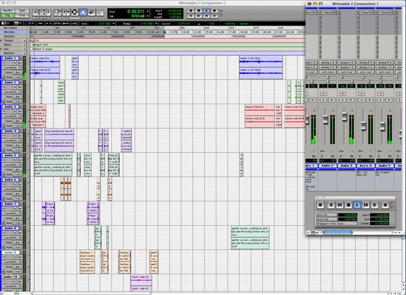 This composition is the result of a fairly traditional, linear approach to soundscape composition which is not dissimilar to the way a musician might work – or someone constructing a soundtrack for a film. The pre-selected sound files are loaded into an editing software called Pro Tools. Here you can arrange and structure the sounds to create interesting sonic outcomes which mirror, but do not necessarily follow, real world possibilities. You can also create impossible scenarios where, perhaps, the sound of one place is mapped onto that of another. For example, a dog can run across the shingle which appears to be inside the Neptune pub or what about walking from the busy street outside the harbour directly into the fish shop on the quay? It sounds possible – only there is no door that lets you do this.